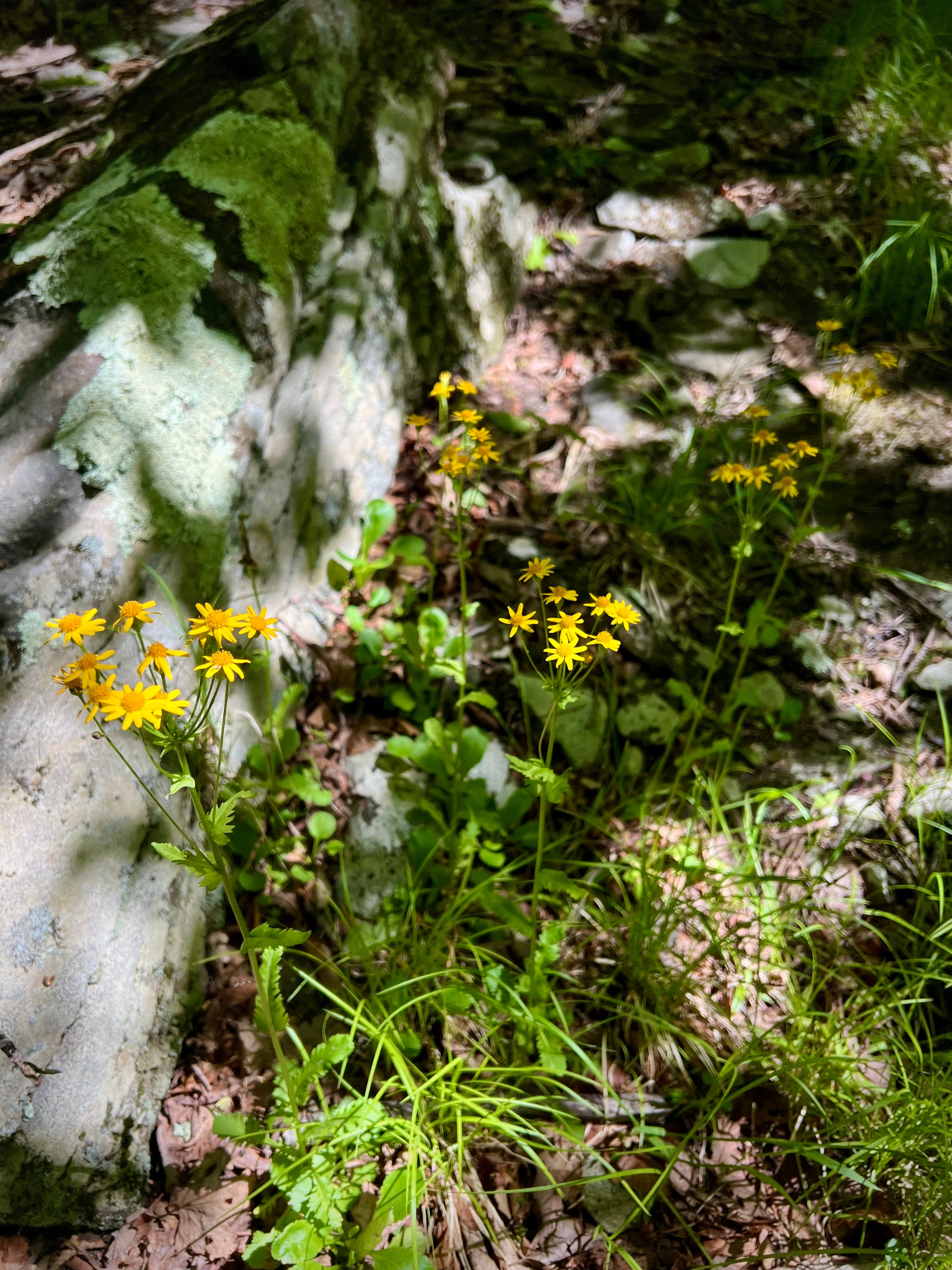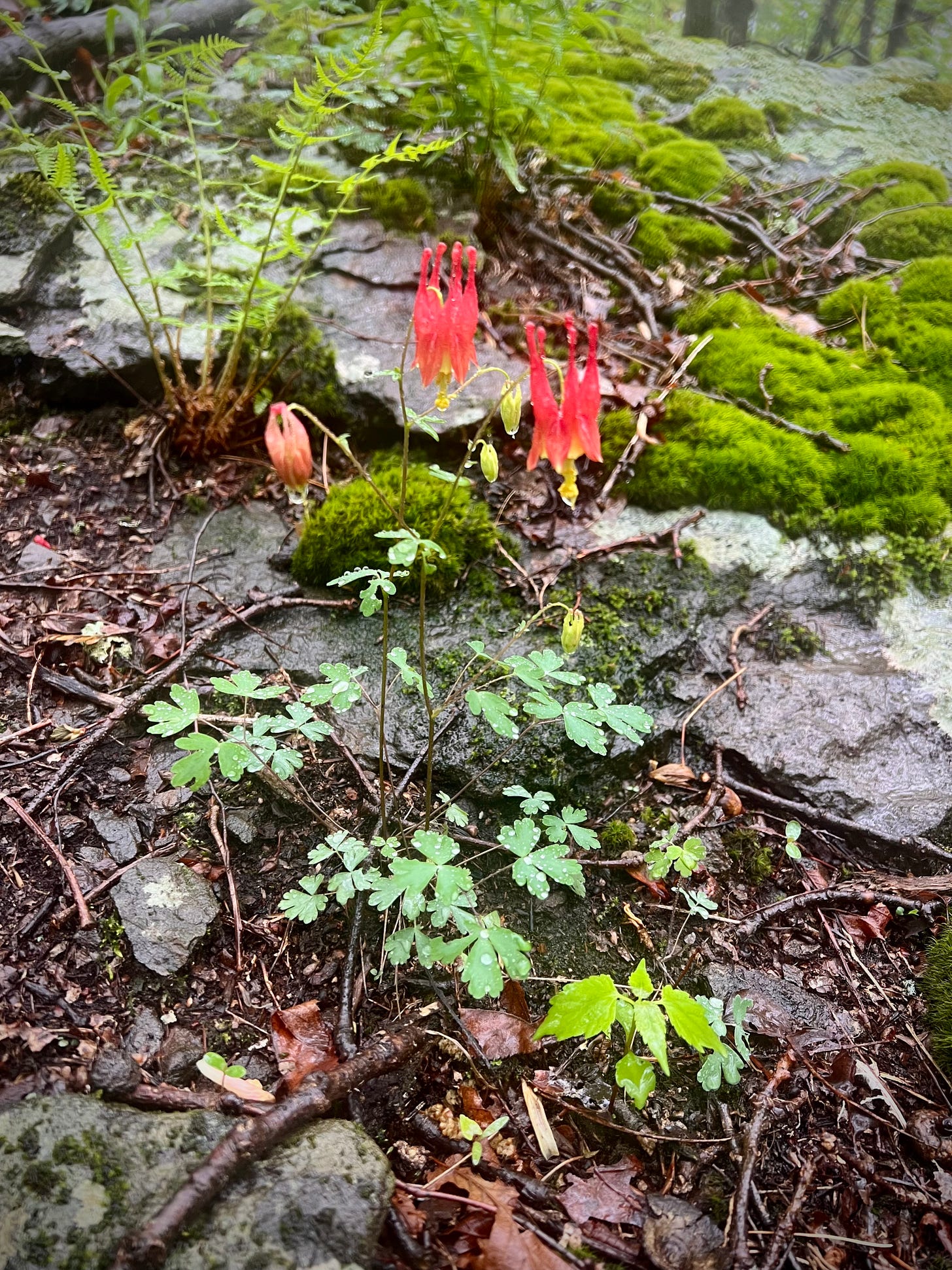 Above are pictures of roundleaf ragwort (Packera obovata) and wild columbine (Aquilegia canadensis), both growing on a section of my land known as an “acidic talus slope woodland”—basically a wooded jumble of rocks that’s moist but well-drained.